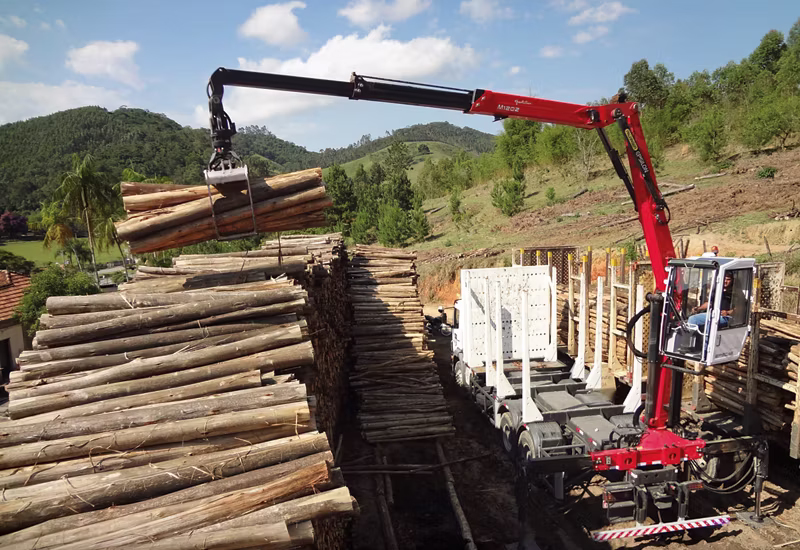 EPSILON bietet die richtigen Kranlösungen für den Rundholztransport mit robusten, langlebigen Konstruktionen und präziser Steuerung für reibungsloses, sicheres Laden.